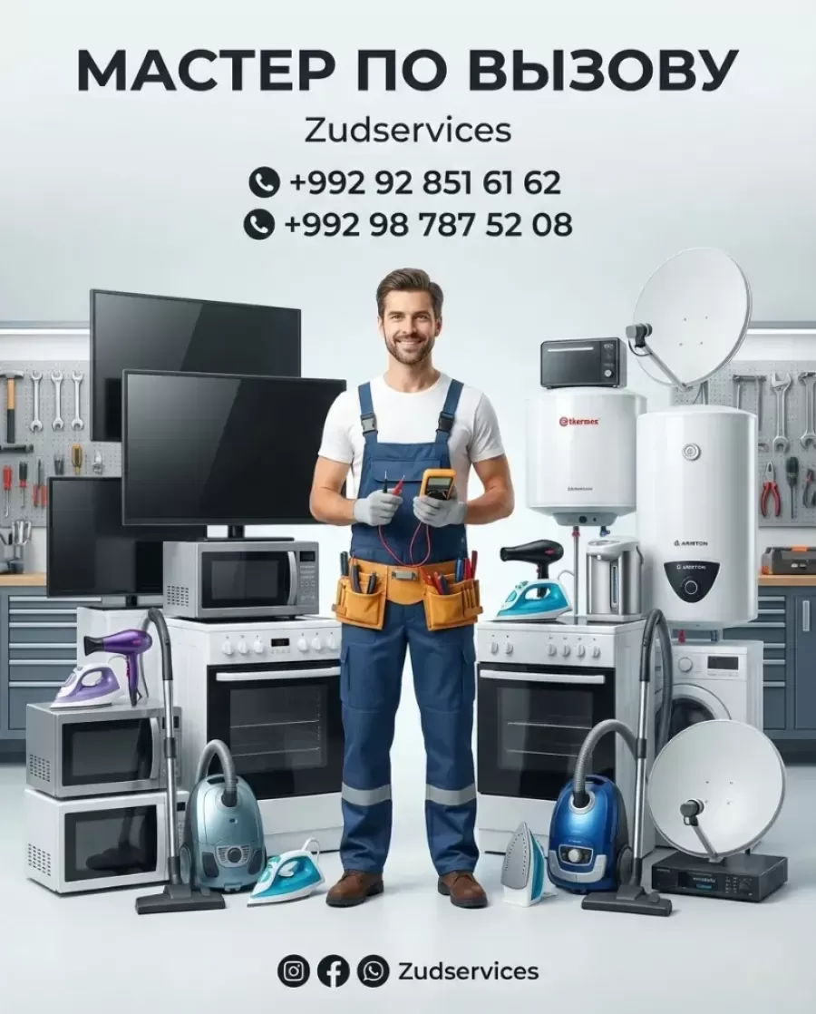 🛠️ МАСТЕР ПО ВЫЗОВУ! 🚛 РАБОТАЕМ ТОЛЬКО ПО ВЫЗОВУ — ЕХАТЬ НИКУДА НЕ НУЖНО! Сломалась техника? Мы приедем сами и всё починим! Быстро, удобно и профессионально. ✅ РЕМОНТ ЛЮБОЙ СЛОЖНОСТИ: * 📺 ТЕЛЕВИЗОРЫ * 🍕 МИКРОВОЛНОВКИ * 🧹 ПЫЛЕСОСЫ * ⚡ ЭЛЕКТРОПЛИТЫ * 🔌 УТЮГИ И ФЕНЫ * ☕ ТЕРМОПОТЫ * 💧 ВОДОНАГРЕВАТЕЛИ (Термекс, Ariston и др.) * 📡 АНТЕННЫ И СПУТНИКОВОЕ ОБОРУДОВАНИЕ 🛑 ВАЖНО: РАБОТАЕМ ТОЛЬКО ПО ВЫЗОВУ! Вам не нужно таскать тяжелую технику по мастерским. Мастер со всем инструментом приедет прямо к вам домой! ⭐ НАШИ ПРЕИМУЩЕСТВА: * ЭКОНОМИЯ ВРЕМЕНИ — выезд в удобный для вас час. * ЧЕСТНАЯ ЦЕНА — без скрытых платежей. * ГАРАНТИЯ — на все виды работ и запчасти. 📞 НУЖЕН РЕМОНТ? ЗВОНИТЕ ИЛИ ПИШИТЕ В ЛИЧНЫЕ СООБЩЕНИЯ! WhatsApp или по телефону ZUDSERVICES всегда на связи!